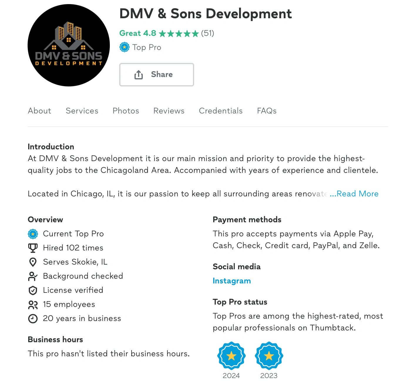 DMV & Sons Development is a licensed, bonded, and insured family-owned business with over 15 years of experience in Residential and Commercial Remodeling, serving Chicago and its surrounding suburban areas.